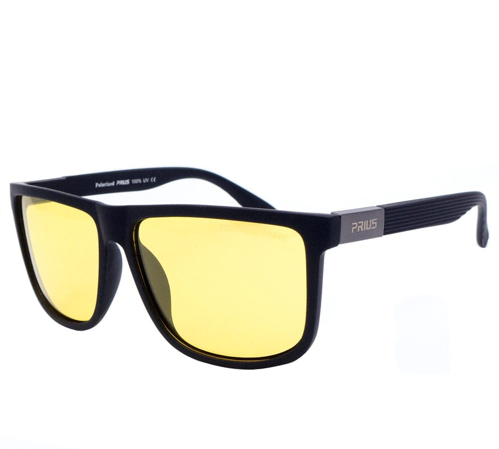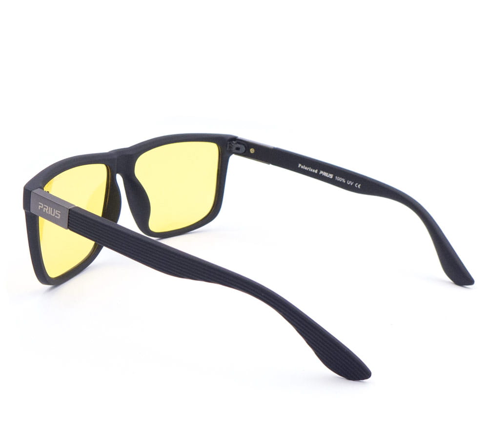 Okulary polaryzacyjne do jazdy nocą z rozjaśniającą żółtą soczewką. Czarna matowa oprawka stanowi doskonały wybór dla miłośników klasyki.
